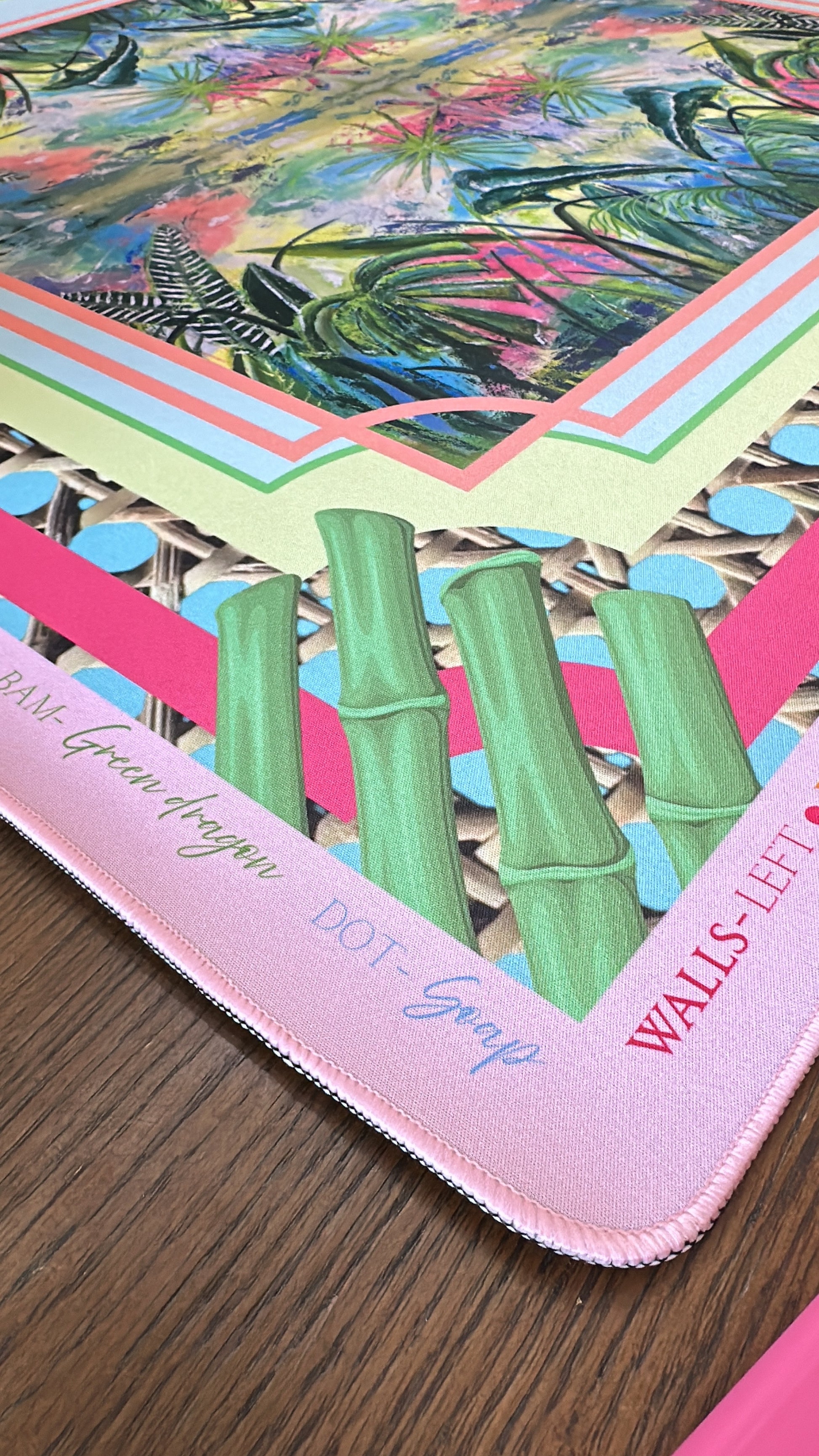 Designed with both beauty and function in mind, this mat features a smooth, soft playing surface that keeps tiles quiet, steady, and gliding just right. Whether you’re hosting a girls’ night, weekly group, or teaching Mahjong to a new crew, The Oasis brings the vibe — vacation energy included.